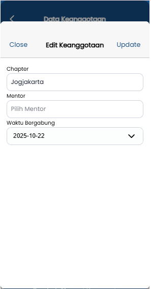 Ubah informasi yang diperlukan, seperti nama chapter, mentor atau waktu bergabung.