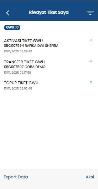 - Warna hijau (+) menunjukkan tiket bertambah, sedangkan warna merah (–) menunjukkan tiket berkurang.