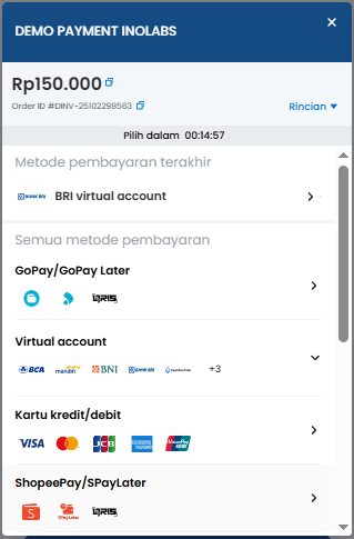 - Tagihan pembayaran, pesanan kadaluarsa dan pembayaran berhasil akan dikirimkan ke email pengguna.