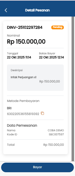 Setelah pembayaran selesai dilakukan, tutup halaman pembayaran. Sistem akan otomatis menampilkan halaman Detail Pesanan.